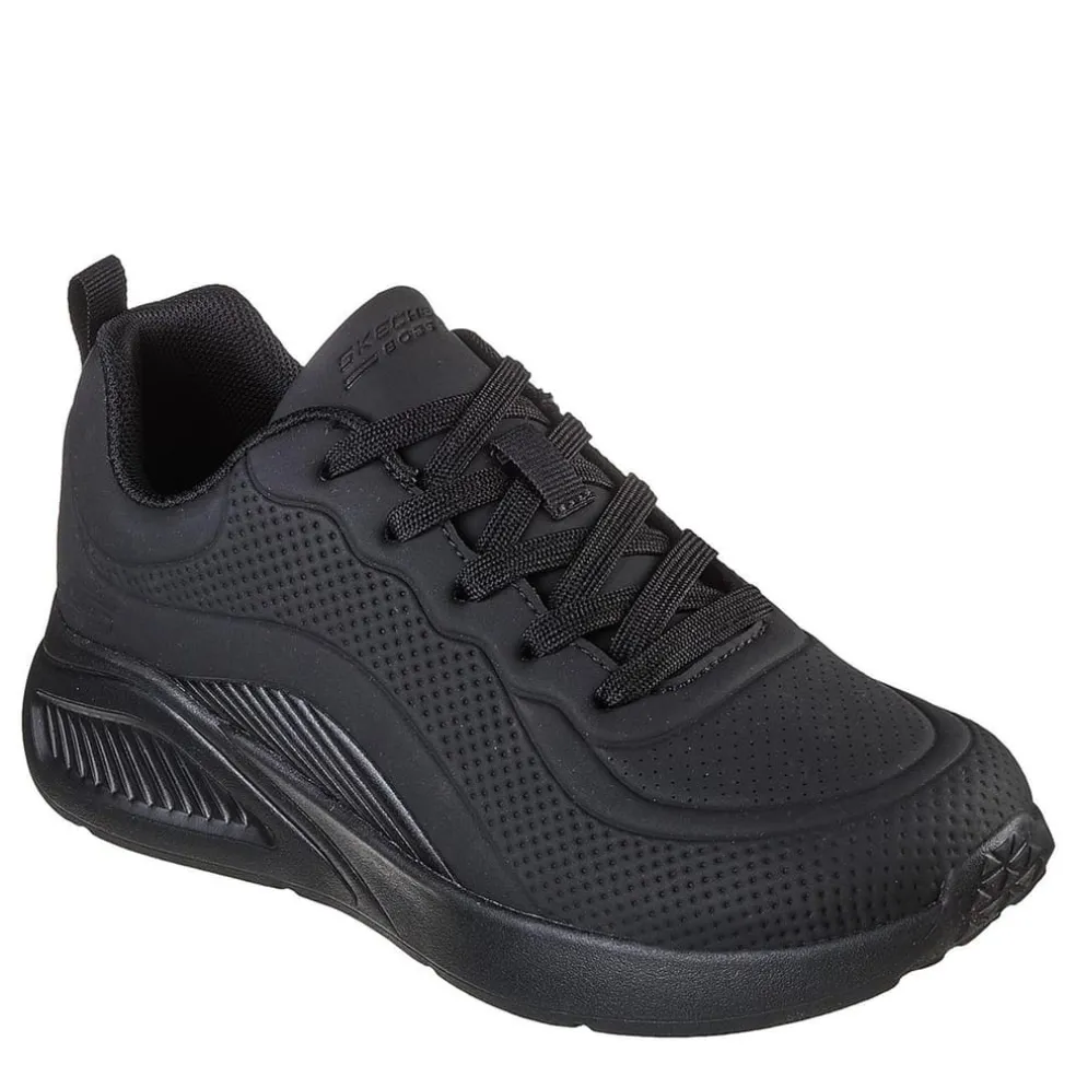Keep it casual with the Bob Buno Women’s Trainers from Skechers. These lightweight trainers offer a classic sport style with lace closure, a padded ankle collar and a heel pull tab with a breathable synthetic perforated upper for durability. The shoe sits of a Memory Foam midsole with a leather outsole and solid colour throughout, finished with a classic embossed Skechers logo on the side to pull together the look. Synthetic upper, synthetic lining with leather and synthetic sole.