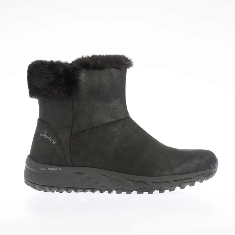– Water repellent synthetic microleather upper with faux-fur trim and lining.