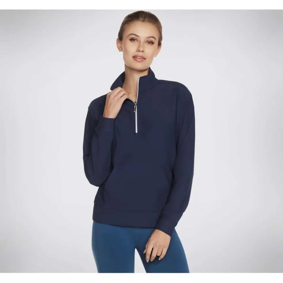 Skechers Womens Goluxe Rib 1 4 Zip Fleece in Blue