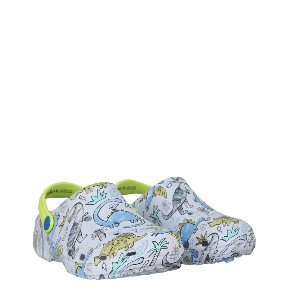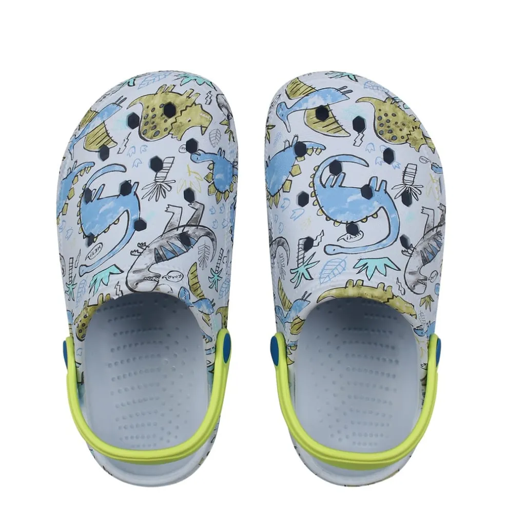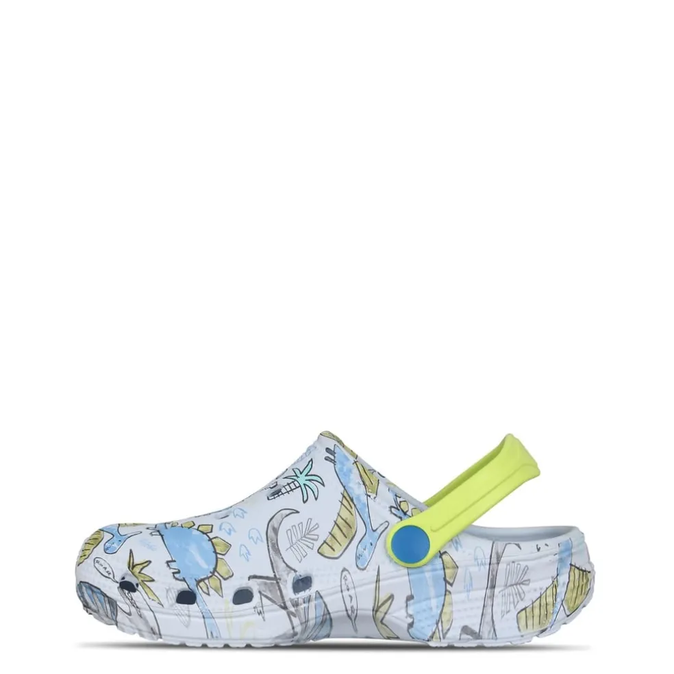 These SoulCal Cloggs are a slip on style featuring a moveable strap for security and versatility. They are crafted with a contoured foot bed for comfort. These cloggs are designed with fun designs and SoulCal branding.