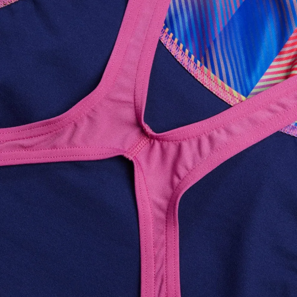 Invigorate your training wearing our striking record-breaker swimsuit. The Recordbreaker teams a medium leg with an open back and straps that sit between the shoulder blades for improved freedom of movement. It’s made from our durable Endurance+ fabric, which is quick-drying and 100% chlorine-resistant. Plus, the Polyester yarn in the Endurance+ fabric is made from 100% post-consumer waste, such as recycled plastic bottles