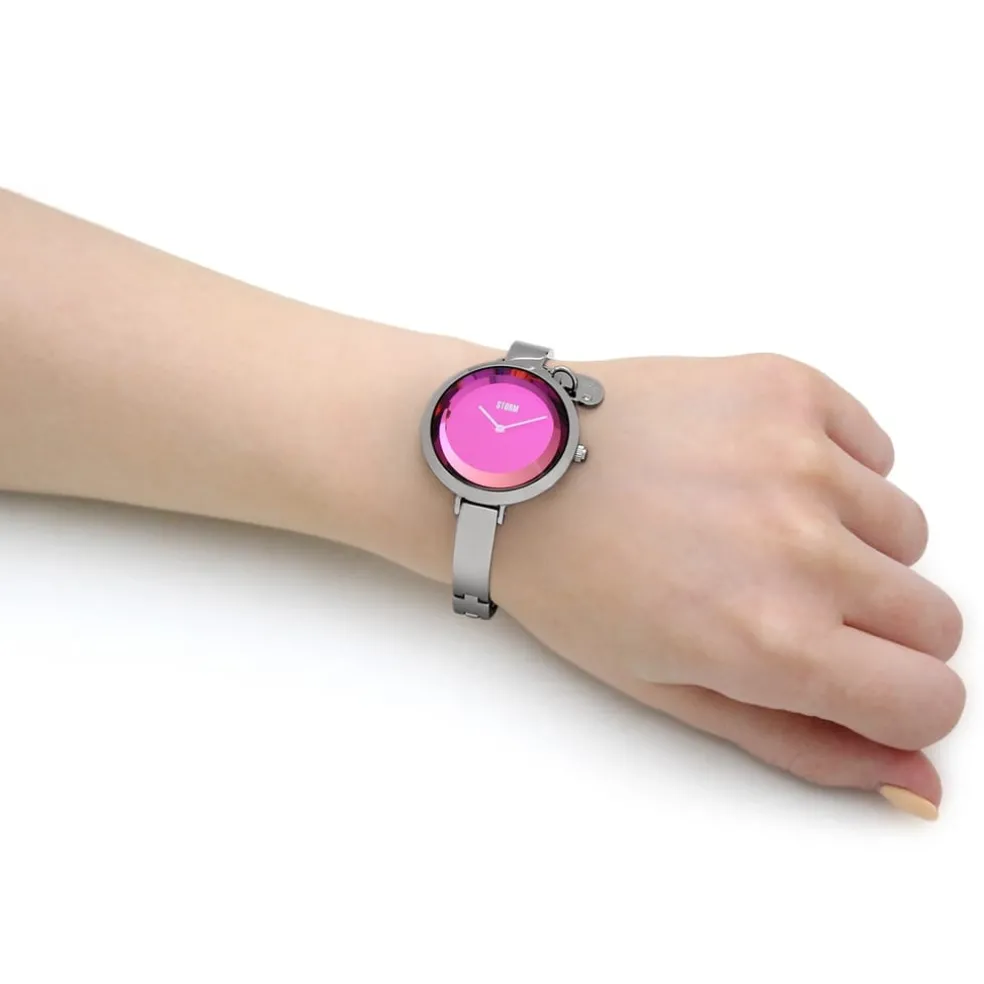 STORM Mera Silver Lazer Purple 47500/S/P is a beautiful and interesting Ladies watch from AW21 collection. Case material is Stainless Steel while the dial colour is Black. This model has got 50 metres water resistancy – it can be submerged in water for periods, so can be used for swimming and fishing. It is not recommended for high impact water sports. The watch is shipped with an original box and a guarantee from the manufacturer.