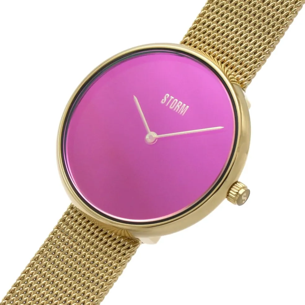 From the STORM London Selina-X collection, exclusive to WatchShop, comes the Selina Purple Gold Watch. Perfect in purple, the bright magenta dial of the Selina-X sits effortlessly against the gold mesh strap. Stand out from the crowd with a bright magenta dial, rust-resistant gold-plated stainless steel case, and a quartz movement for ultimate precision.