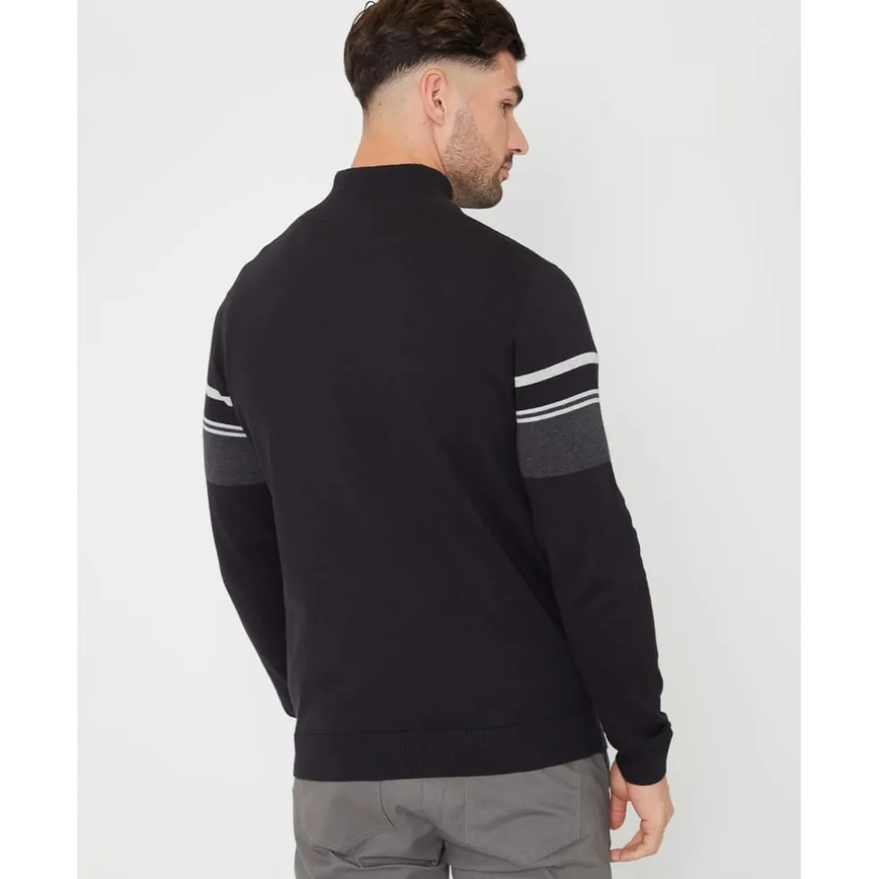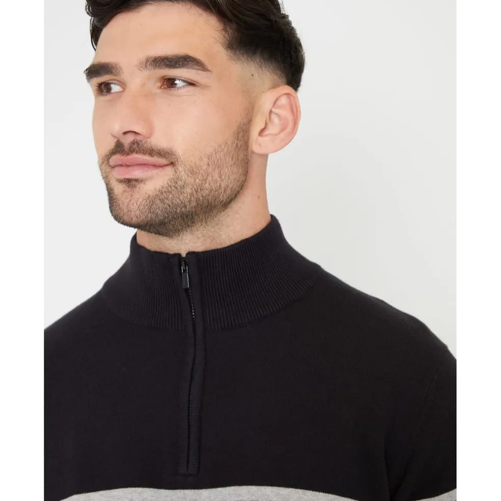 Threadbare Zip Neck Regular Fit Sweater in Black