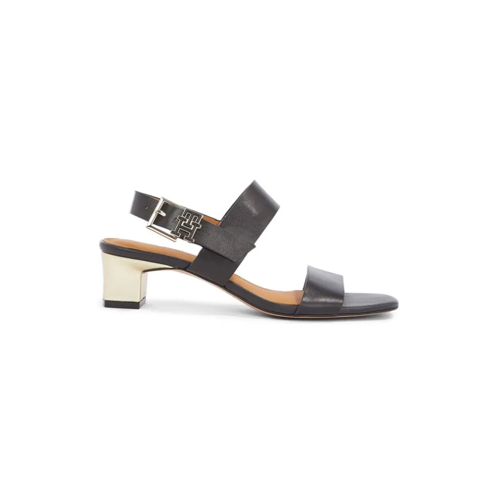 Tommy Hilfiger Gold Heel Slides Sandals in Black