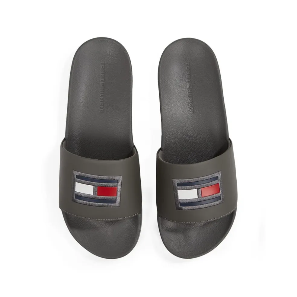 Tommy Hilfiger Pool Logo Print Flatform Slides in Grey