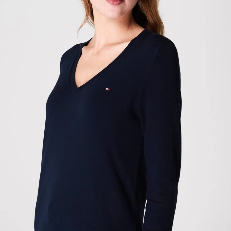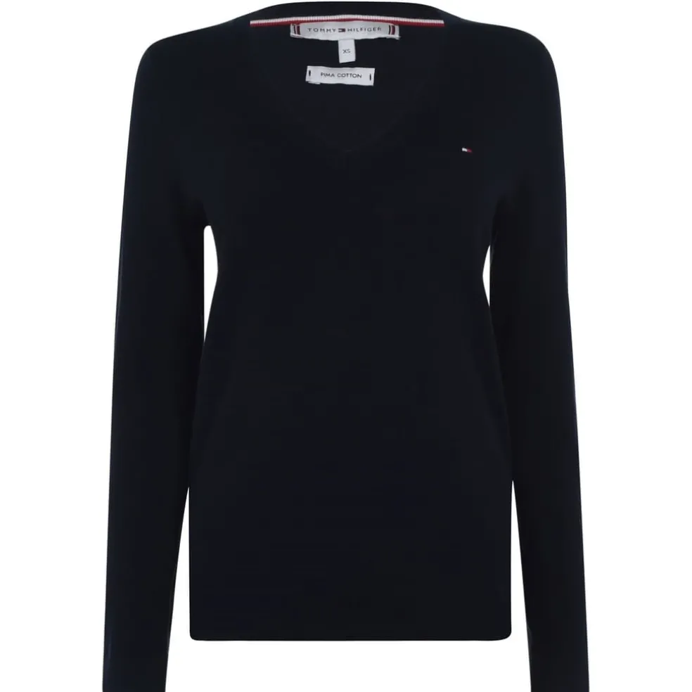 Update your collection with the Heritage V Neck Sweater from Tommy Hilfiger. This stylish design is crafted with a soft cotton construction and features a v neck, long sleeves, ribbed trims and a contrast block panel on the chest with perforations to help with breathability. The look is finished with the Tommy Hilfiger logo embroidered to the chest.