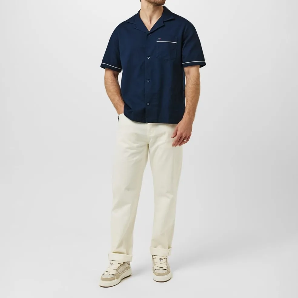Tommy Jeans Regular Fit Camp Collar Short Sleeve Shirt in Blue