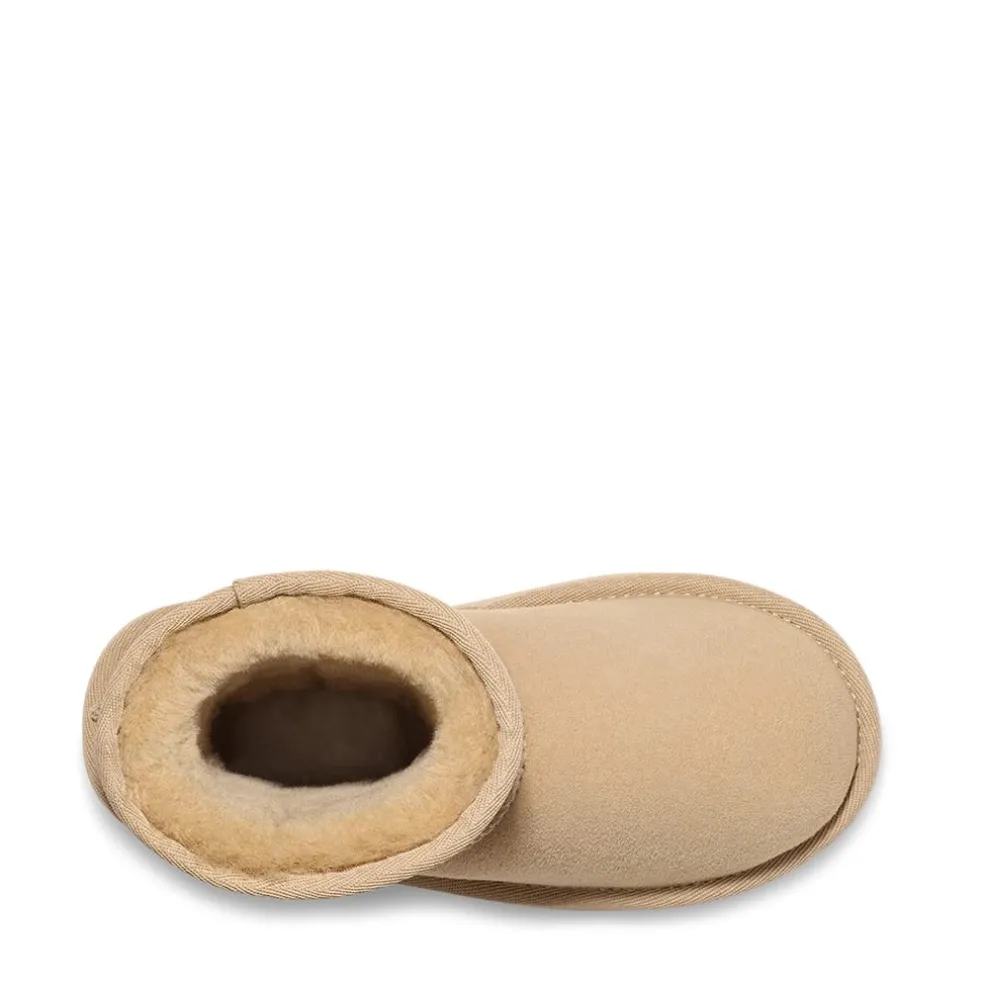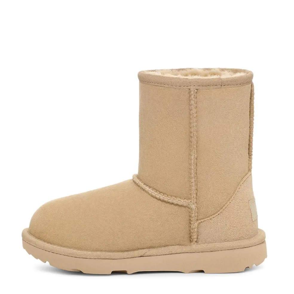 Warm, cute and definitely on someone’s wish list! The kids’ Ugg Classic II are a reliable shoe for colder days and warmer feet. Coated in a black Suede Upper and sheepskin lining, these boots are fashionable, trendy and practical. Complete with the Ugg badge on each ankle.