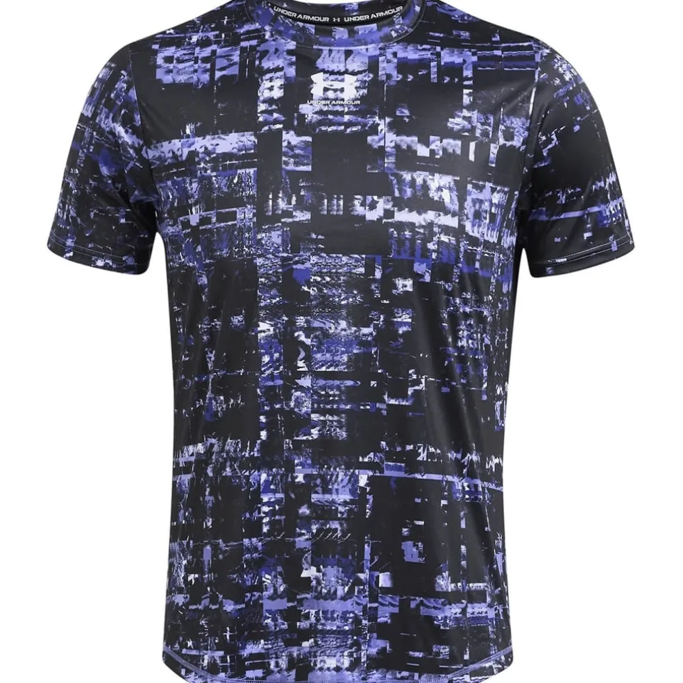 Elevate your training sessions with this Under Armour athletic T-shirt. Featuring a crew neck and short sleeves, it offers a comfortable regular fit. The geometric print adds a stylish touch while the logo embellishment signifies quality. Ideal for casual wear, this performance top ensures you stay at your best during workouts.