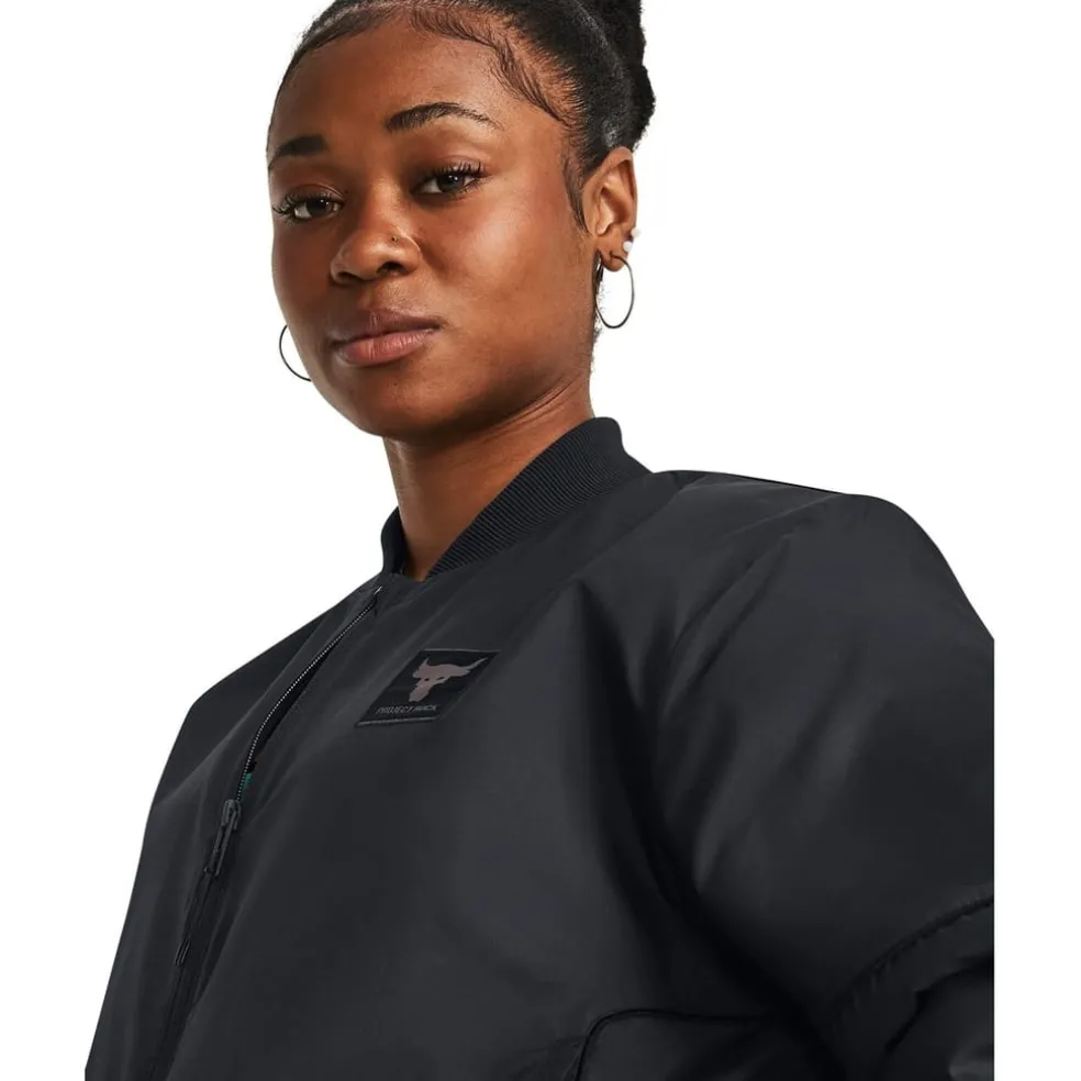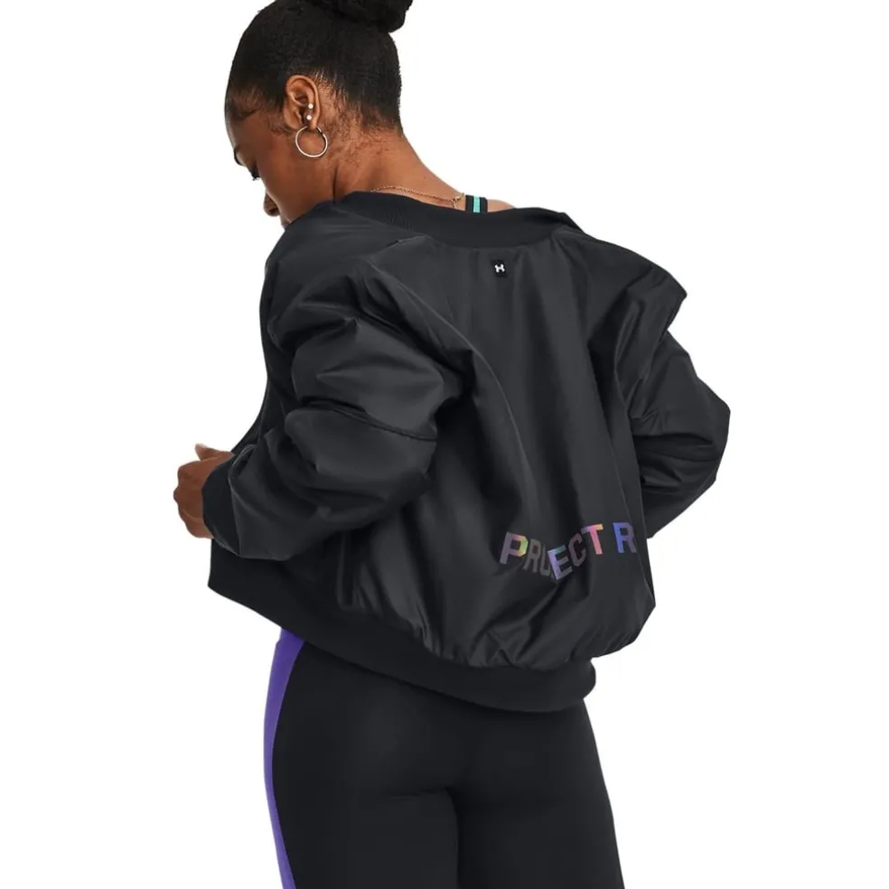 Under Armour Short Collared Neck Relaxed Fit Bomber Jacket in Black