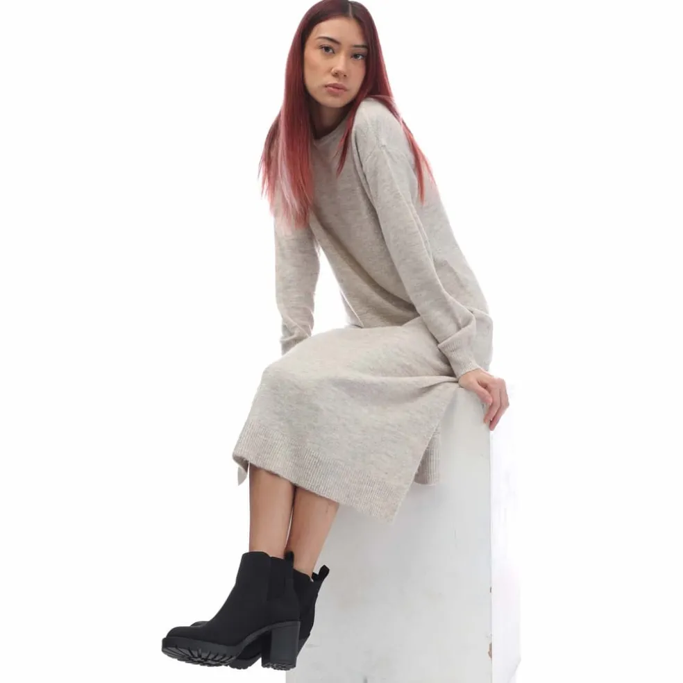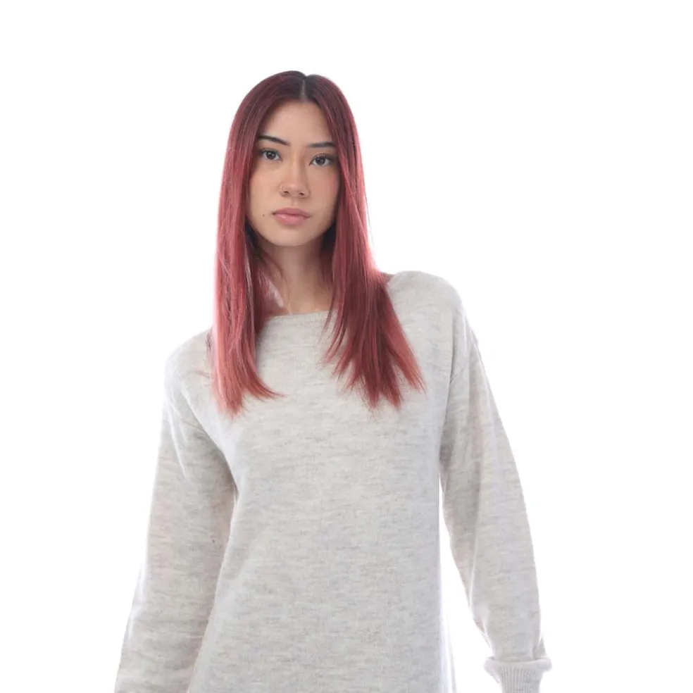 – Ribbed crewneck.