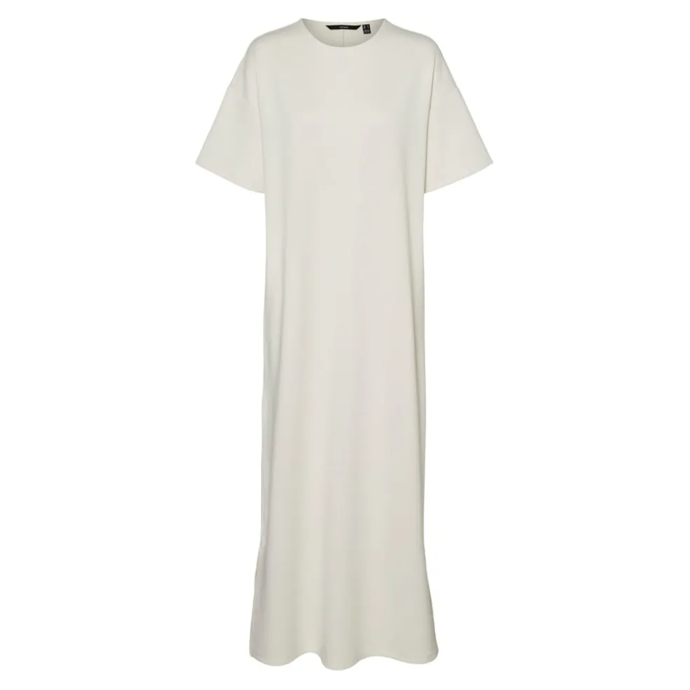 Vero Moda maxi dress in a solid pattern, featuring a crew neck and a curved hem. This t-shirt style dress offers a relaxed and comfortable fit, perfect for casual outings.