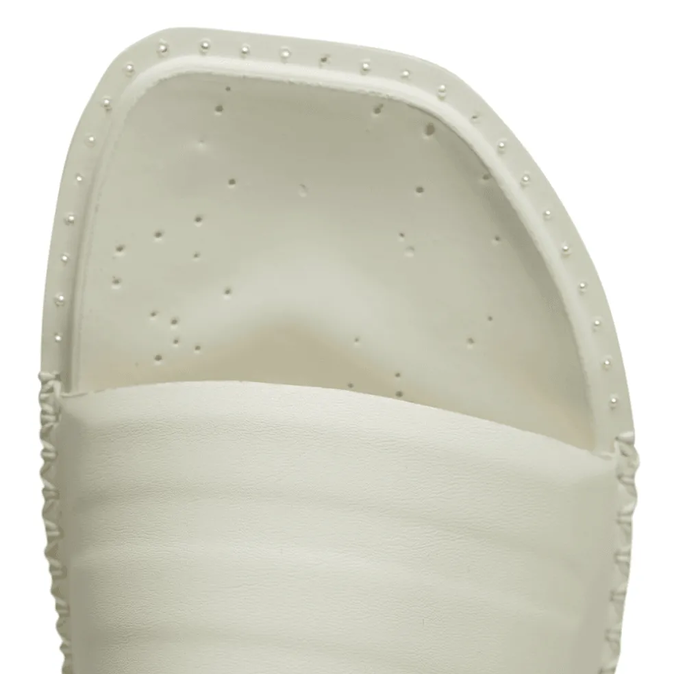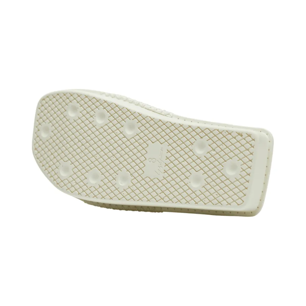 Handcrafted details accentuate the minimalist design of the Y-3 Water Slides. The textured PU footbed is crafted with intentional irregularities on top. The outsole nods to the famed adidas Adilette slides and gets finished with Yohji’s signature on the bottom. Hand-stitched thread attaches the smooth polyurethane upper to the cushioned footbed.